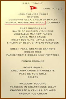 Receita de um dos pratos servidos no último jantar da Primeira Classe, no Titanic, na noite do dia 14 de Abril de 1912.